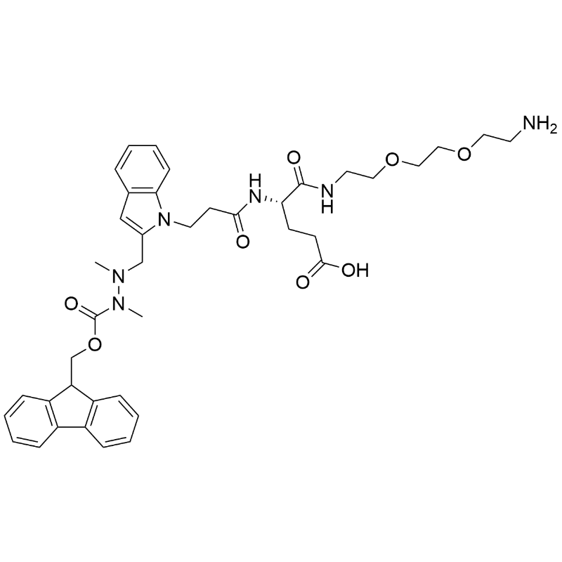 • Product Name: (S)-4-(3-(2-((2-(((9H-fluoren-9-yl)methoxy)carbonyl)-1,2-dimethylhydrazineyl)methyl)-1H-indol-1-yl)propanamido)-5-((2-(2-(2-aminoethoxy)ethoxy)ethyl)amino)-5-oxopentanoic acid