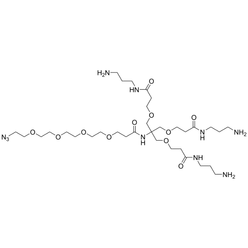 - SMILES: O=C(NCCCN)CCOCC(COCCC(NCCCN)=O)(COCCC(NCCCN)=O)NC(CCOCCOCCOCCOCCN=[N+]=[N-])=O
