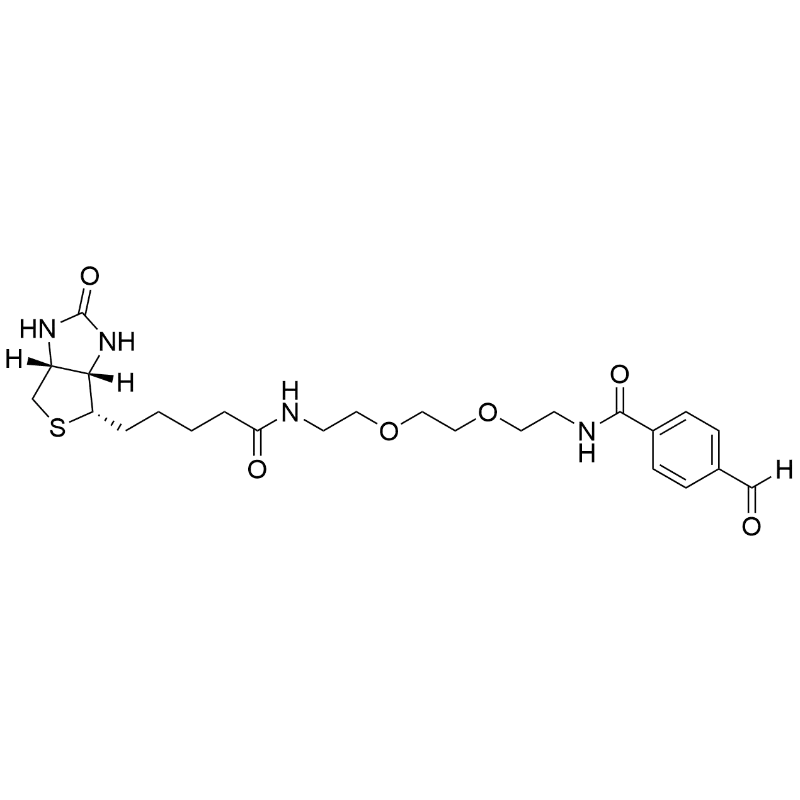 - SMILES: O=C(CCCC[C@@H]1SC[C@]2([C@@]([H])1NC(N2)=O)[H])NCCOCCOCCNC(C3=CC=C(C=C3)C([H])=O)=O