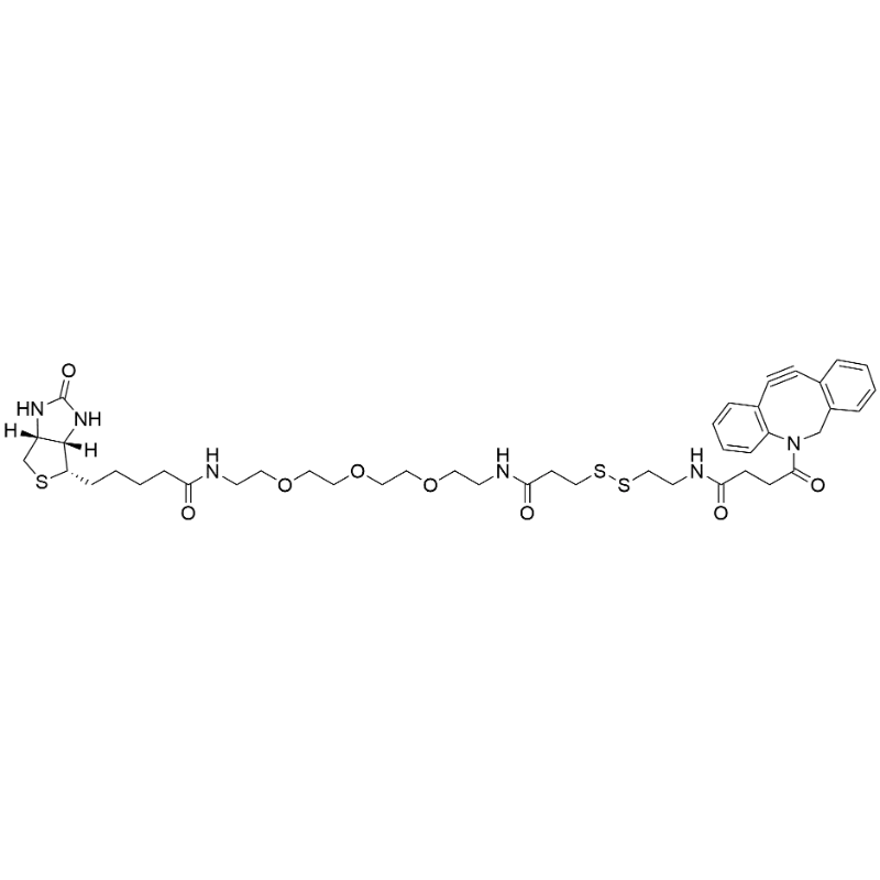- SMILES: O=C(CCSSCCNC(CCC(N1C2=C(C=CC=C2)C#CC3=C(C=CC=C3)C1)=O)=O)NCCOCCOCCOCCNC(CCCC[C@@H]4SC[C@]5([C@@]([H])4NC(N5)=O)[H])=O