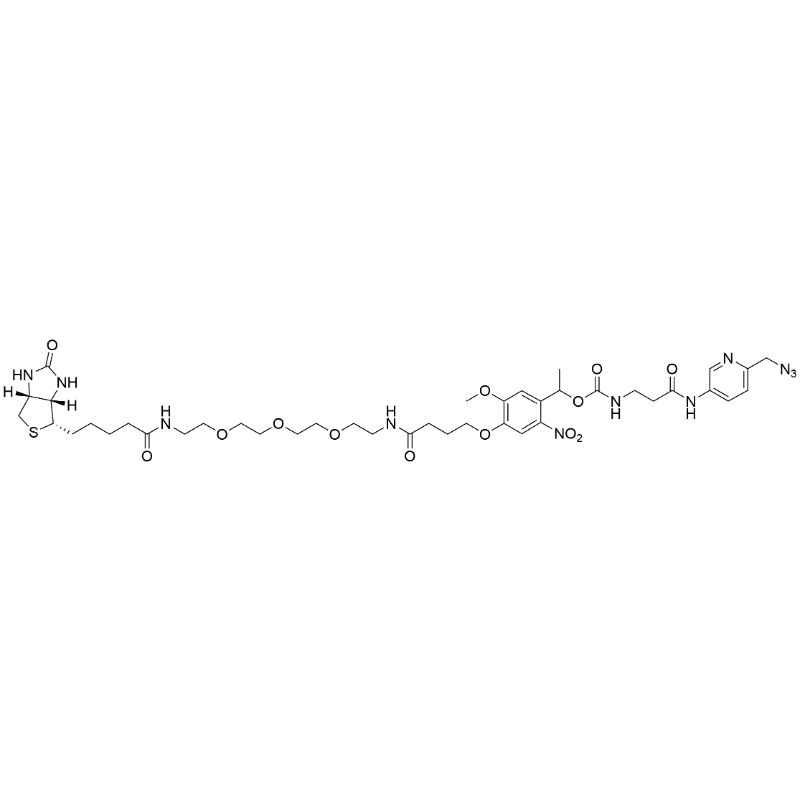 - SMILES: O=C(CCCC[C@@H]1SC[C@@]([C@](N2)1[H])(NC2=O)[H])NCCOCCOCCOCCNC(CCCOC(C=C(C(C(C)OC(NCCC(NC3=CC=C(CN=[N+]=[N-])N=C3)=O)=O)=C4)[N+]([O-])=O)=C4OC)=O