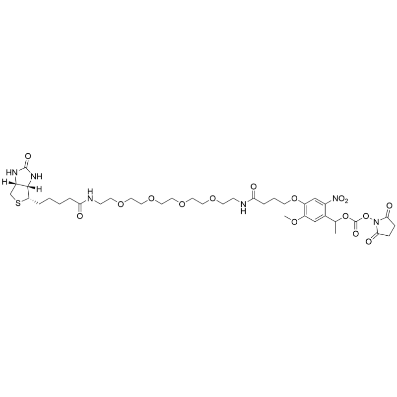 - SMILES: CC(C1=CC(OC)=C(C=C1[N+]([O-])=O)OCCCC(NCCOCCOCCOCCOCCNC(CCCC[C@@H]2SC[C@]3([C@@]([H])2NC(N3)=O)[H])=O)=O)OC(ON(C(CC4)=O)C4=O)=O