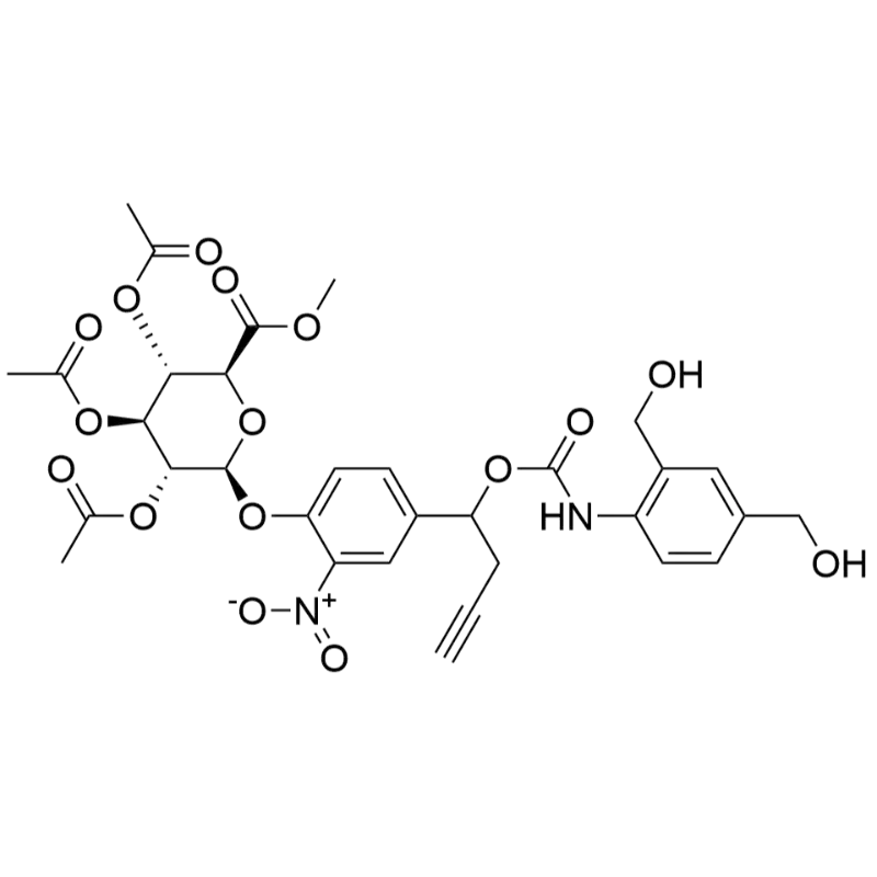 - SMILES: C#CCC(C1=CC=C(O[C@H]2[C@H](OC(C)=O)[C@@H](OC(C)=O)[C@H](OC(C)=O)[C@@H](C(OC)=O)O2)C([N+]([O-])=O)=C1)OC(NC3=C(CO)C=C(C=C3)CO)=O