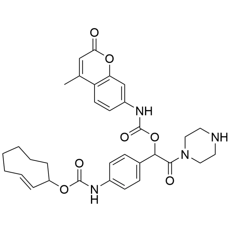 • Product Name: (E)-cyclooct-2-en-1-yl (4-(1-(((4-methyl-2-oxo-2H-chromen-7-yl)carbamoyl)oxy)-2-oxo-2-(piperazin-1-yl)ethyl)phenyl)carbamate