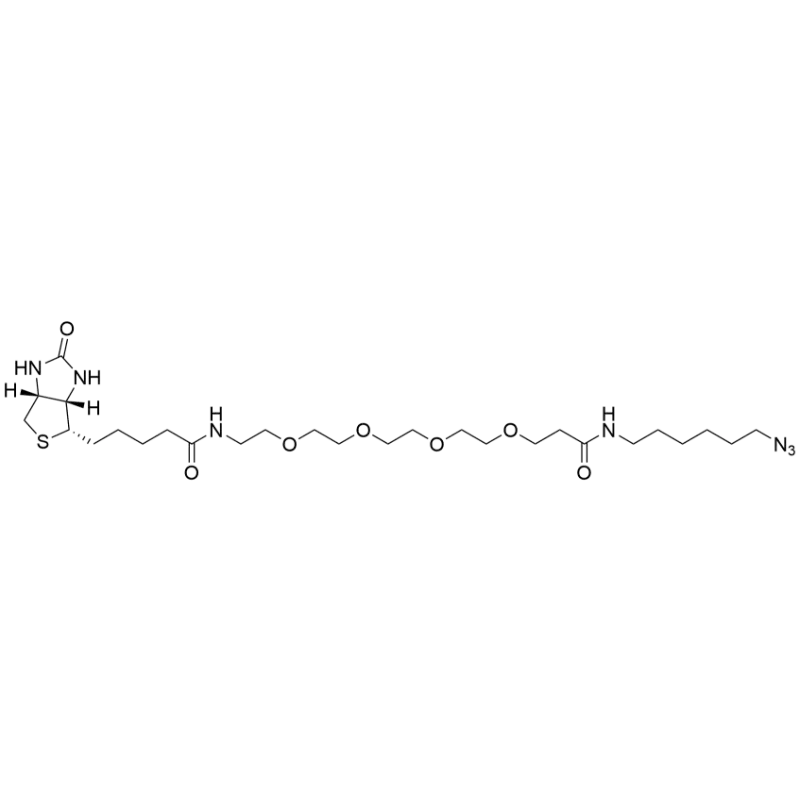 - SMILES: O=C(CCCC[C@@H]1SC[C@]2([C@@]([H])1NC(N2)=O)[H])NCCOCCOCCOCCOCCC(NCCCCCCN=[N+]=[N-])=O