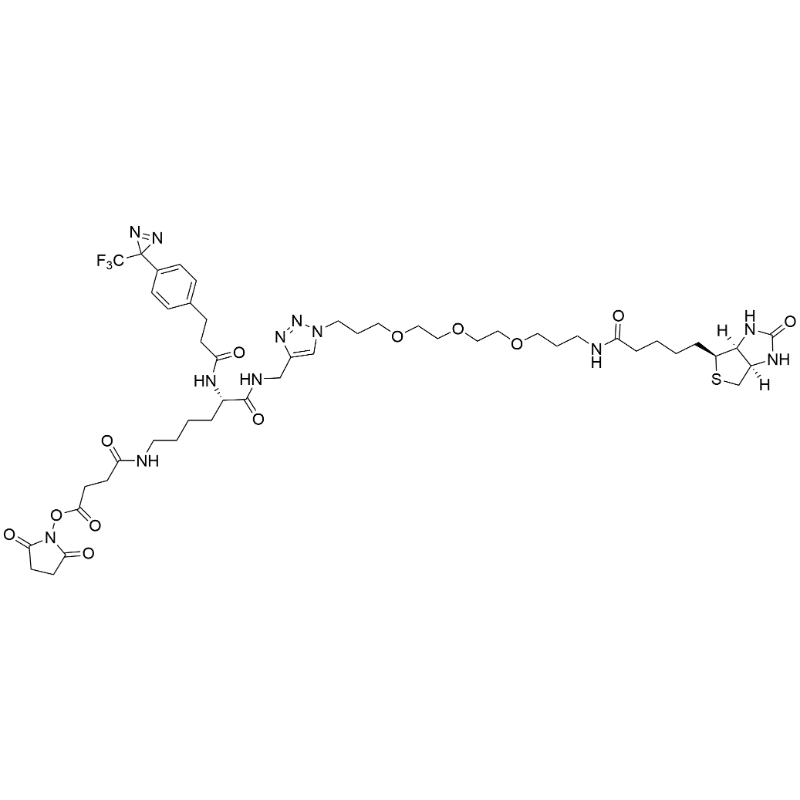 - Product Name: CF3-Diazirine-PA-Lys(Succ-NHS)-(CH2-triazole-PEG3-C3-amido-Biotin)