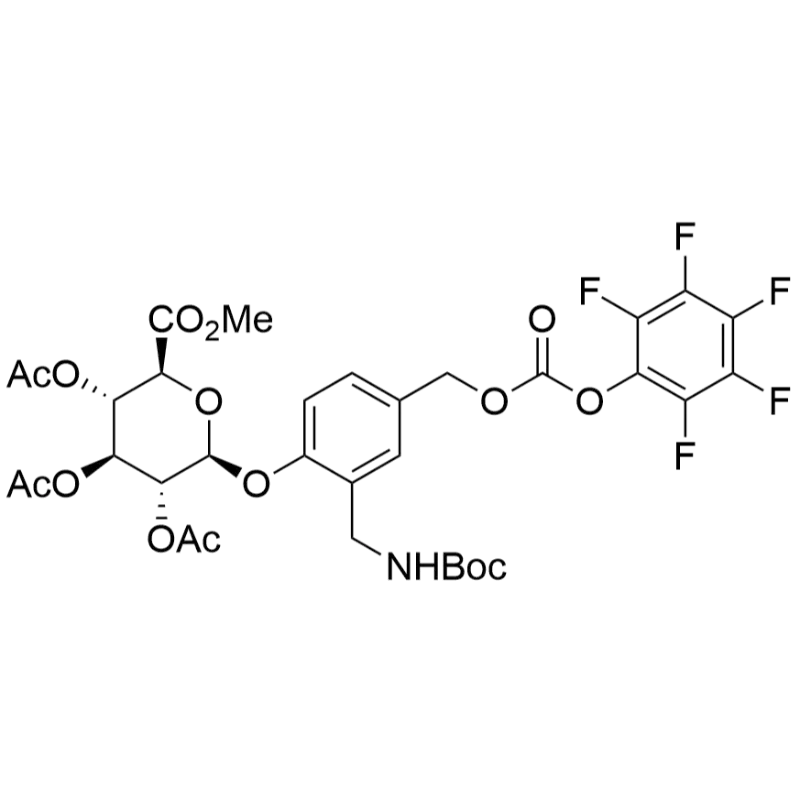 • Product Name: (2S,3R,4S,5S,6S)-2-(2-(((tert-butoxycarbonyl)amino)methyl)-4-((((perfluorophenoxy)carbonyl)oxy)methyl)phenoxy)-6-(methoxycarbonyl)tetrahydro-2H-pyran-3,4,5-triyl triacetate