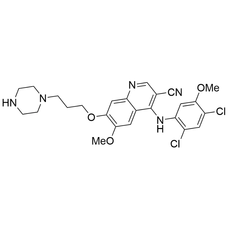• Product Name: 4-((2,4-dichloro-5-methoxyphenyl)amino)-6-methoxy-7-(3-(piperazin-1-yl)propoxy)quinoline-3-carbonitrile