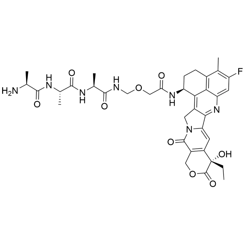 - SMILES: C[C@@H](C(N[C@H](C(N[C@@H](C)C(NCOCC(N[C@H]1CCC2=C(C1=C(CN3C4=CC5=C(COC([C@@]5(CC)O)=O)C3=O)C4=N6)C6=CC(F)=C2C)=O)=O)=O)C)=O)N