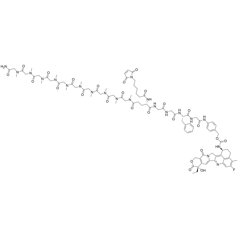 - SMILES: O=C(CNC([C@H](CCC(N(C)CC(N(C)CC(N(C)CC(N(C)CC(N(C)CC(N(C)CC(N(C)CC(N(C)CC(N(C)CC(N(C)CC(N)=O)=O)=O)=O)=O)=O)=O)=O)=O)=O)=O)NC(CCCCCN1C(C=CC1=O)=O)=O)=O)NCC(N[C@@H](CC2=CC=CC=C2)C(NCC(NC3=CC=C(COC(N[C@H]4CCC5=C(C4=C(CN6C7=CC8=C(COC([C@@]8(CC)O)=O)C6=O)C7=N9)C9=CC(F)=C5C)=O)C=C3)=O)=O)=O