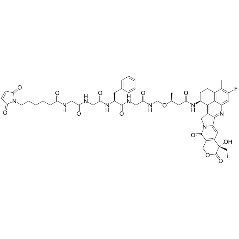 - SMILES: C(F)1C=C2N=C3C4=CC5[C@](CC)(O)C(=O)OCC=5C(=O)N4CC3=C3[C@@H](NC(=O)C[C@H](C)OCNC(=O)CNC(=O)[C@H](CC4=CC=CC=C4)NC(=O)CNC(=O)CNC(=O)CCCCCN4C(=O)C=CC4=O)CCC(=C23)C=1C