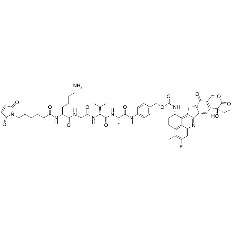 - SMILES: O=C1C=CC(N1CCCCCC(N[C@@H](CCCCN)C(NCC(N[C@@H](C(C)C)C(N[C@@H](C)C(NC2=CC=C(COC(N[C@H]3CCC4=C(C3=C(CN5C6=CC7=C(COC([C@@]7(CC)O)=O)C5=O)C6=N8)C8=CC(F)=C4C)=O)C=C2)=O)=O)=O)=O)=O)=O