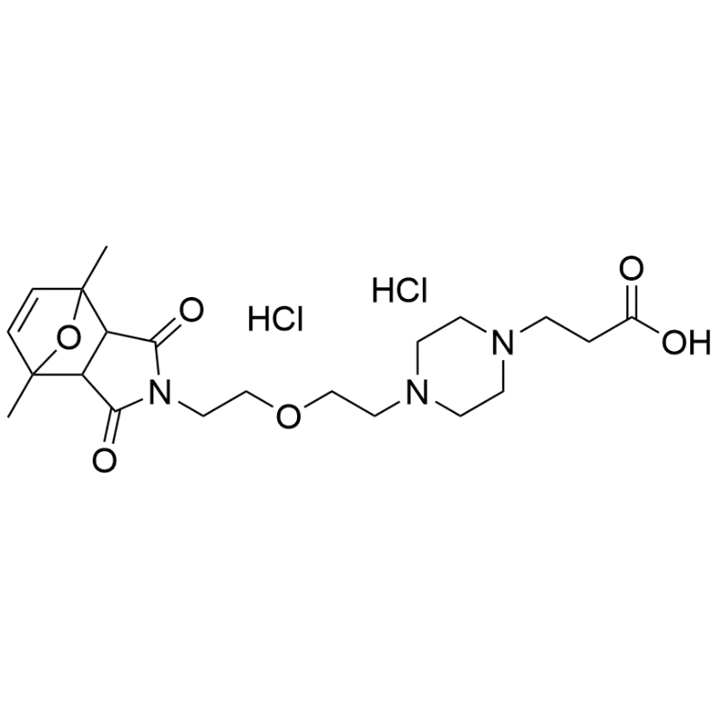 - SMILES: CC1(O2)C3C(C(N(CCOCCN4CCN(CCC(O)=O)CC4)C3=O)=O)C2(C)C=C1.Cl.Cl