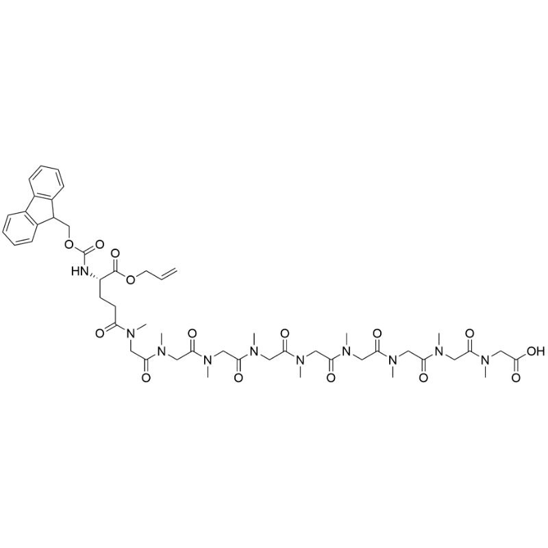 - SMILES: O=C(OCC=C)[C@H](CCC(N(C)CC(N(C)CC(N(C)CC(N(C)CC(N(C)CC(N(C)CC(N(C)CC(N(C)CC(N(C)CC(O)=O)=O)=O)=O)=O)=O)=O)=O)=O)=O)NC(OCC1C2=C(C3=C1C=CC=C3)C=CC=C2)=O