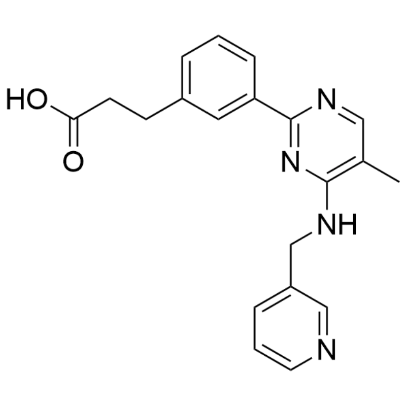 - SMILES: O=C(O)CCC1=CC=CC(C2=NC(NCC3=CC=CN=C3)=C(C)C=N2)=C1
