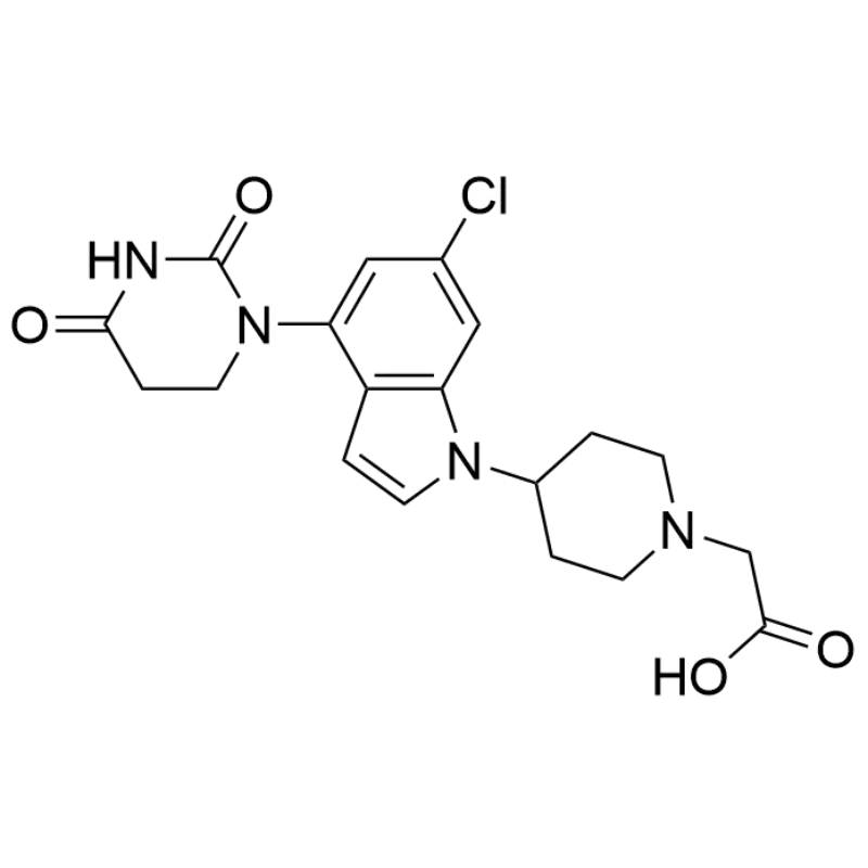 - SMILES: O=C(N1)CCN(C1=O)C2=CC(Cl)=CC3=C2C=CN3C4CCN(CC(O)=O)CC4