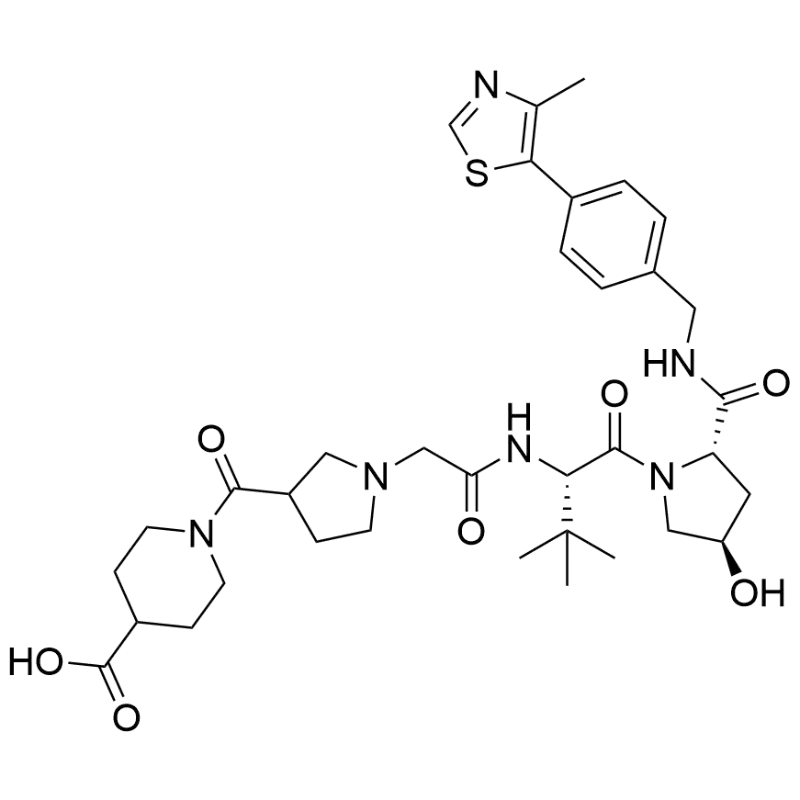 - SMILES: O=C([C@@H]1C[C@H](CN1C([C@H](C(C)(C)C)NC(CN2CC(C(N3CCC(C(O)=O)CC3)=O)CC2)=O)=O)O)NCC4=CC=C(C5=C(N=CS5)C)C=C4