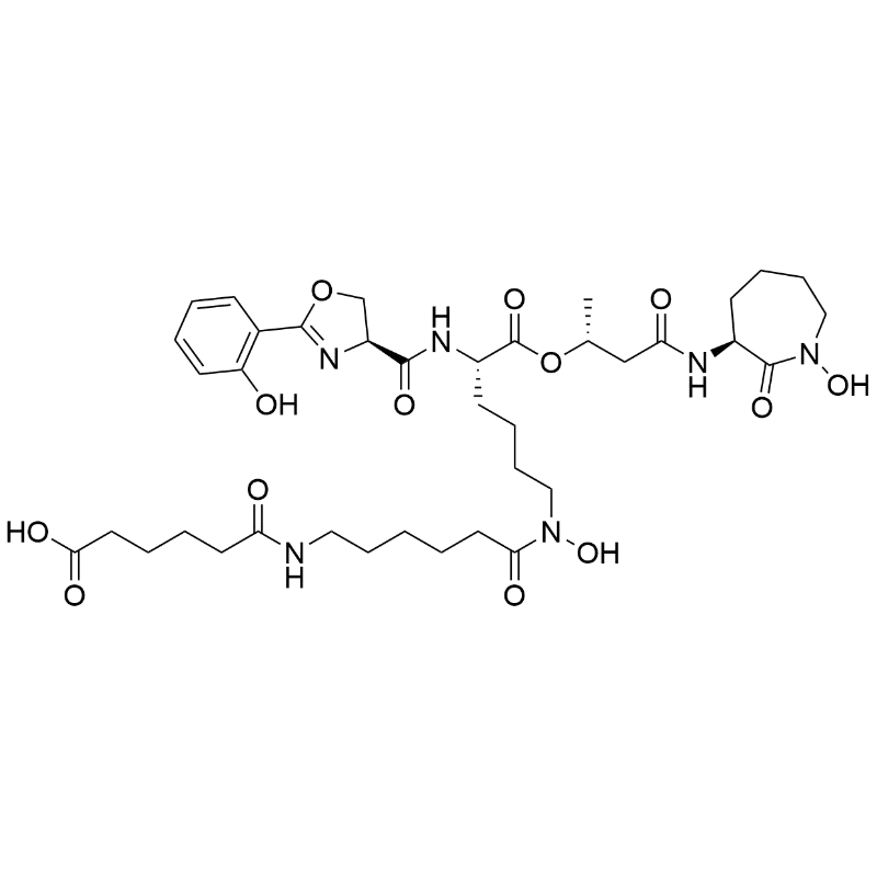 - SMILES: OC1=C(C2=N[C@H](C(N[C@@H](CCCCN(C(CCCCCNC(CCCCC(O)=O)=O)=O)O)C(O[C@H](C)CC(N[C@@H]3C(N(O)CCCC3)=O)=O)=O)=O)CO2)C=CC=C1